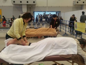 フィニッシュ会場横のマッサージブースではプレミナセラピストスクールより今年で3回目となるスポーツアロマによる走行後の選手へのケアを行います。