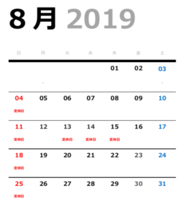 4日(日)、11日(日)、13日(火)、14日(水)、15日(木)、18(日)、25日(日)