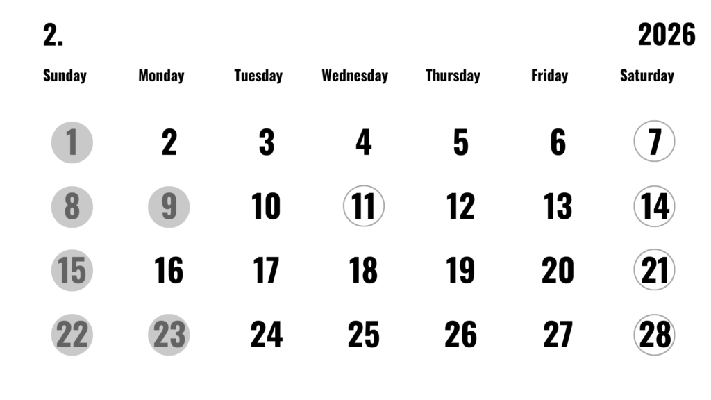 2月の営業スケジュールについてご案内いたします。