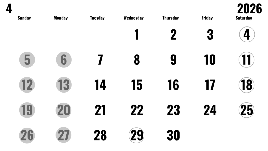 4月営業スケジュールのご案内